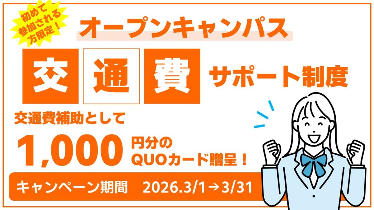 対象期間:2026年3月1日(日)~2026年3月31日(土)の期間中のオープンキャンパス