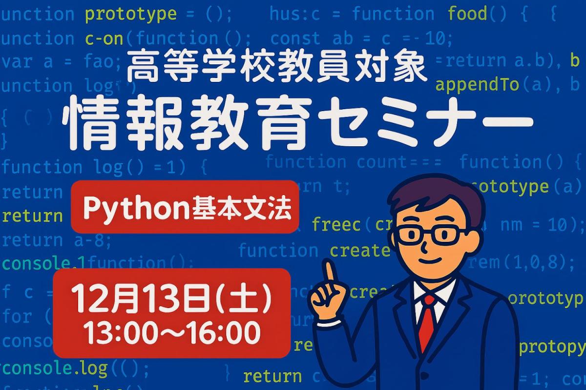 Pythonの基本文法について、例題を題材に講義・練習問題の演習を通し、理解を深めます。基礎的な内容となりますが、Pythonの特徴なども知り、実行環境についてもご説明いたします。